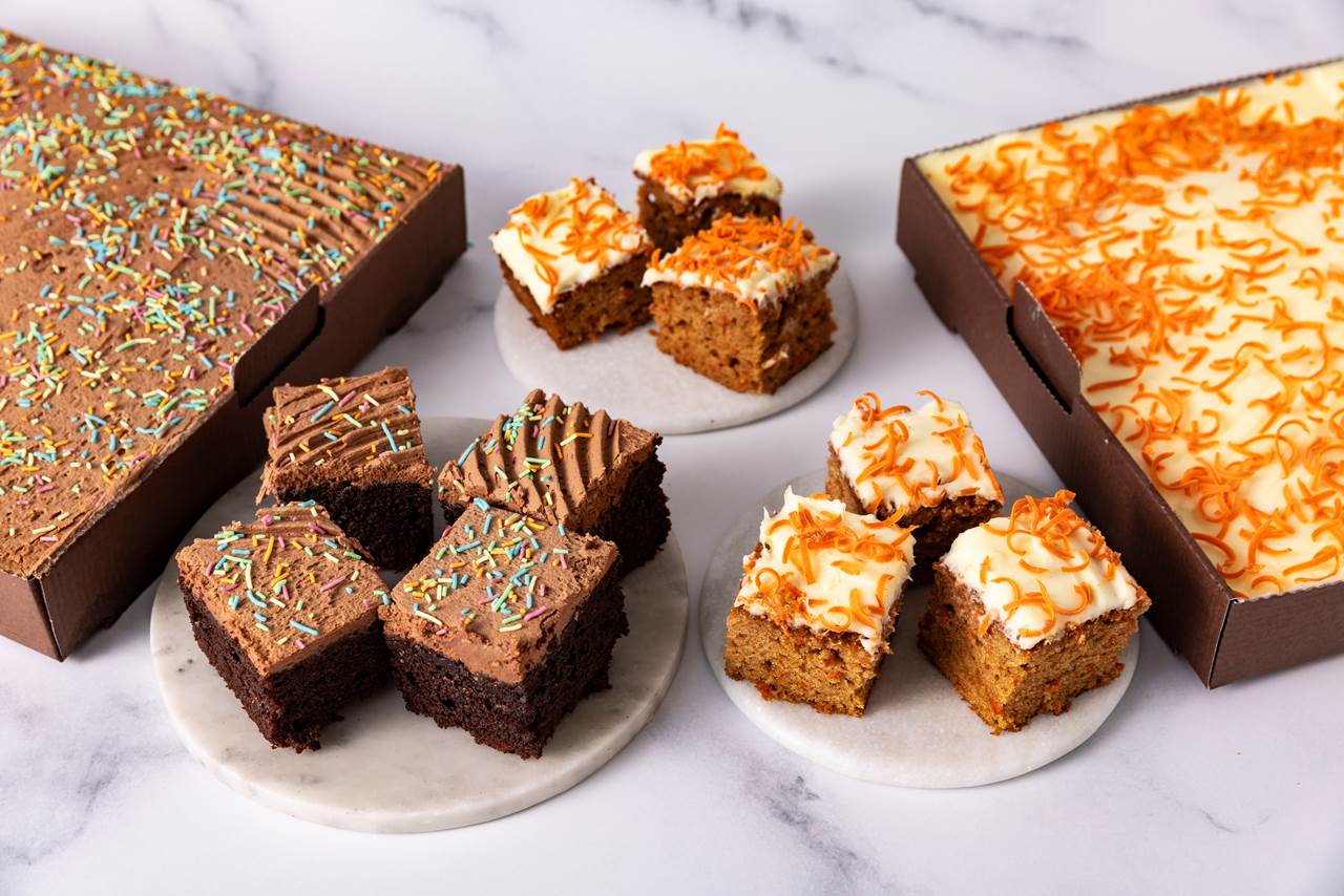 Her er to langpannekaker som passer perfekt til dugnaden. Begge kakene kommer i en praktisk kakeeske som er lett å ta frakte med seg.